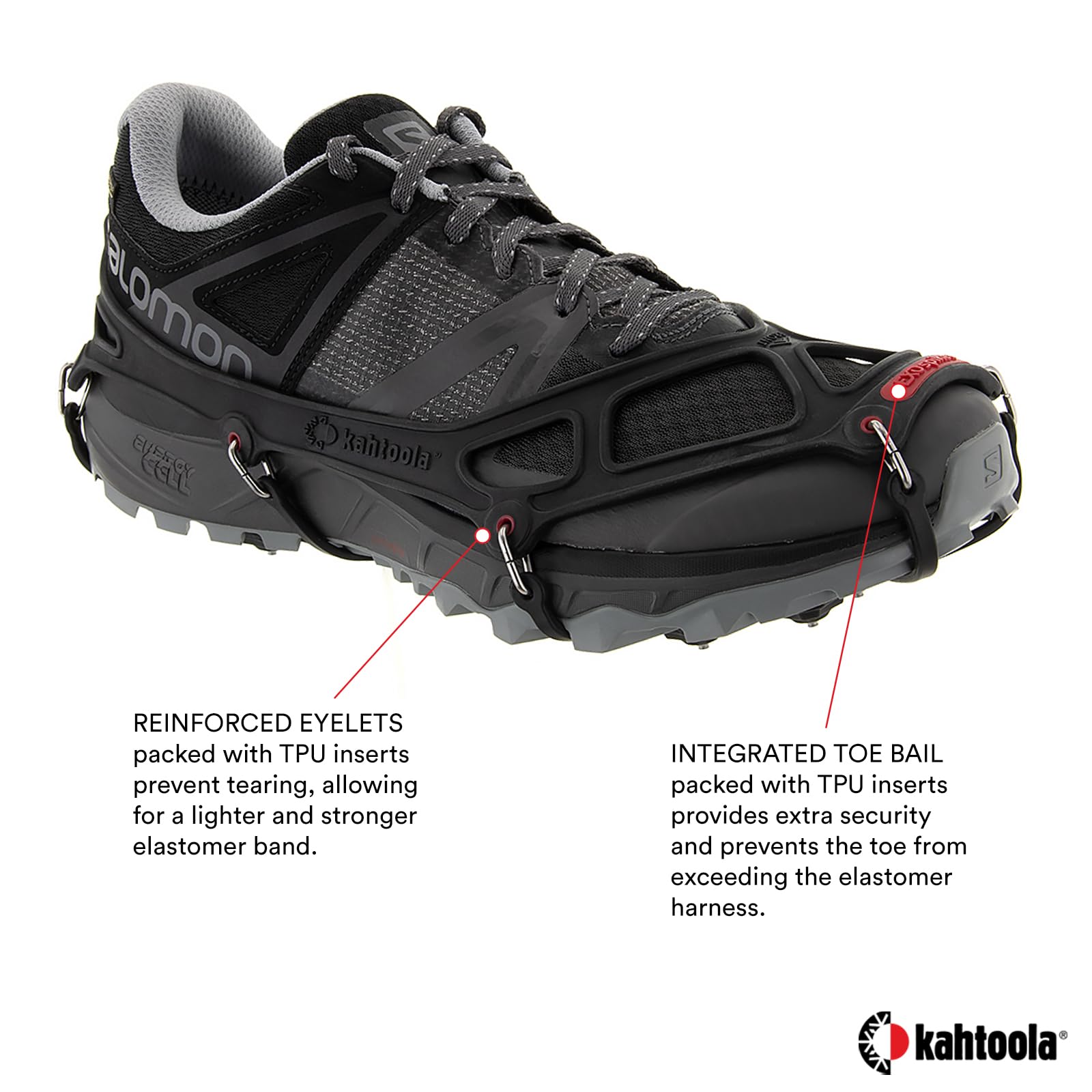 - ADDITIONAL FEATURES: Industry-first TPU Traction Matrix is extremely durable and more abrasion resistant than steel. Open design quickly sheds snow and adapts to a wide range of flexible footwear.