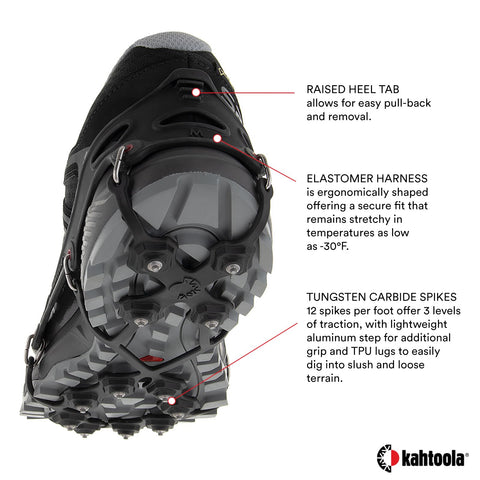 Kahtoola EXOspikes Footwear Traction for Winter Hiking & Running in Snow, Ice & Rocky Terrain